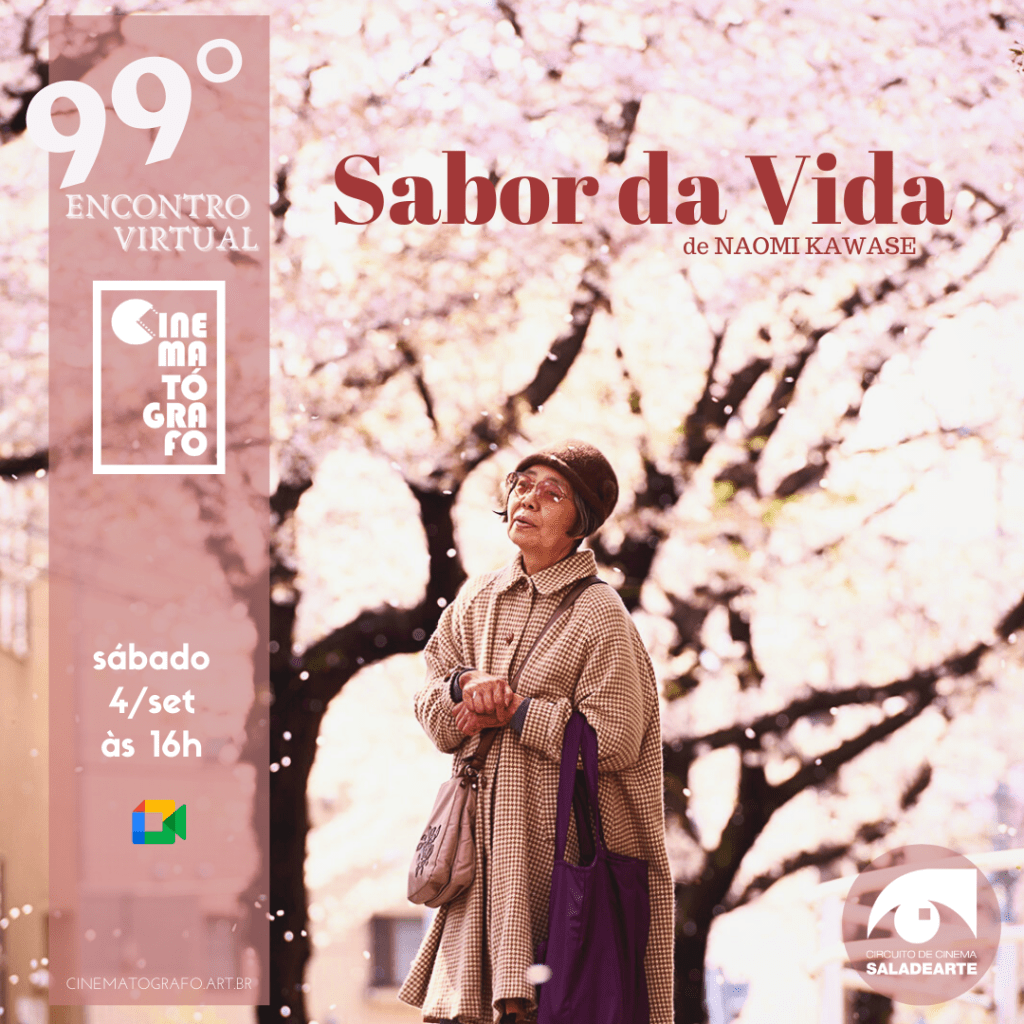“Sabor da Vida” (2015), da diretora japonesa Naomi Kawase, é o tema de nosso 99º Encontro Virtual Cinematógrafo e Saladearte, que acontece neste sábado (4/set), às 16h, via Google Meet.