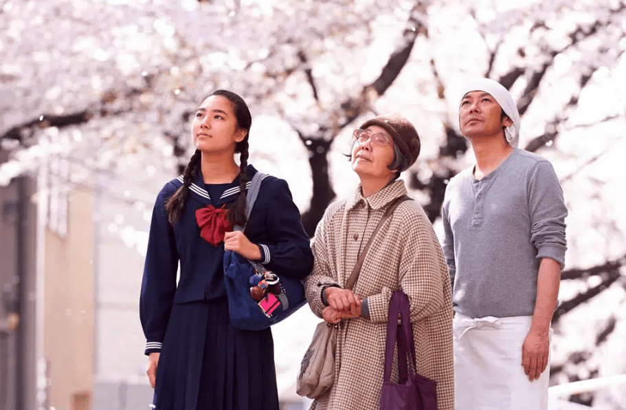 Tokue se oferece para trabalhar no quiosque que Sentaro gerencia, fazendo e vendendo dorayakis, iguaria doce feita à base de “An”, uma saborosa pasta de feijão. O lugar se torna o espaço de um encontro geracional transformador entre a septuagenária Tokue, o quarentão Sentaro e a jovem Wakana, estudante de postura quieta e olhar profundo