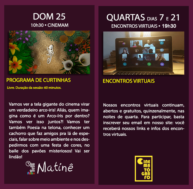 Programação dos encontros Cinematógrafo em janeiro: