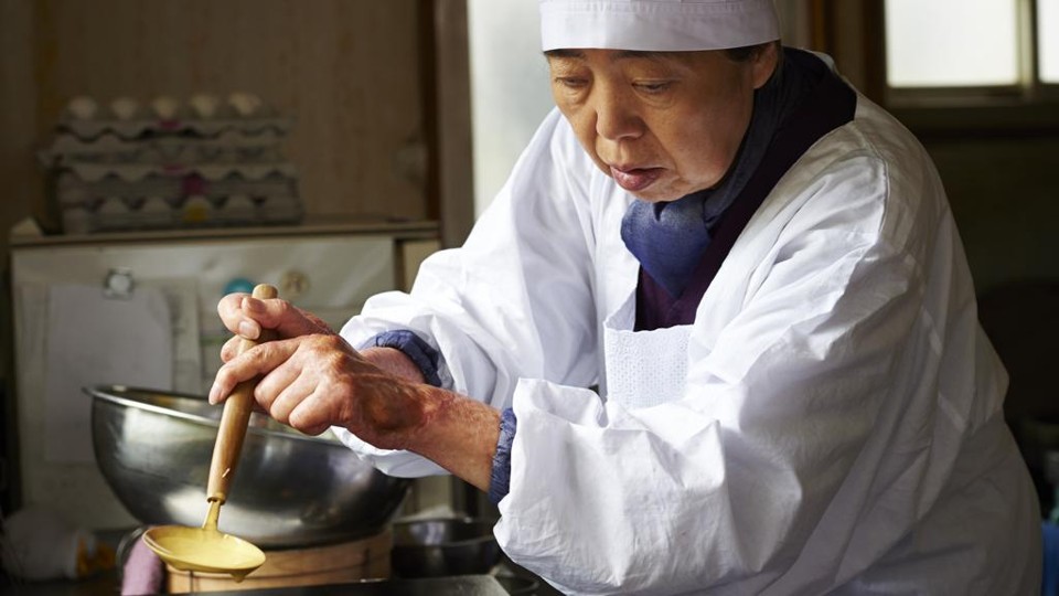Tokue se oferece para trabalhar no quiosque que Sentaro gerencia, fazendo e vendendo dorayakis, iguaria doce feita à base de “An”, uma saborosa pasta de feijão. O lugar se torna o espaço de um encontro geracional transformador entre a septuagenária Tokue, o quarentão Sentaro e a jovem Wakana, estudante de postura quieta e olhar profundo.