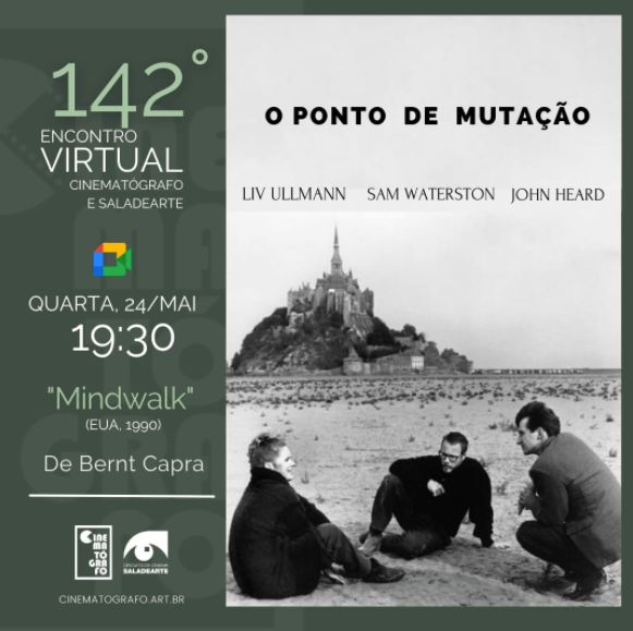 Nesta quarta, dia 24/maio, vamos ao nosso 142° Encontro Virtual Cinematógrafo e Saladearte! O assunto, desta vez, é o filme “O Ponto de Mutação” (2013), do diretor Bernt capra.