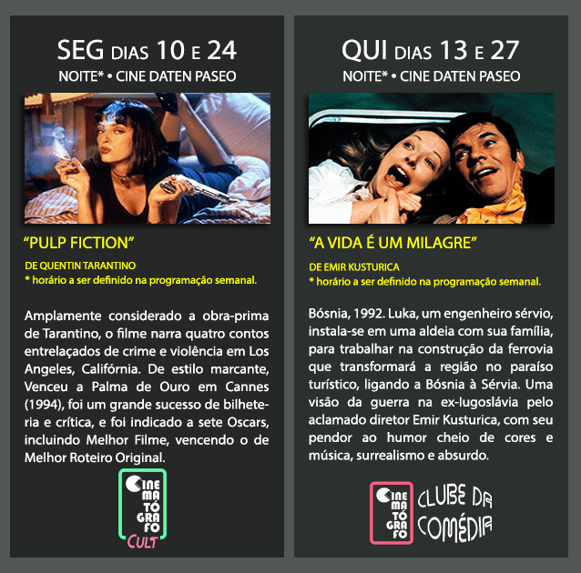O CULT, em duas noites de segunda no Paseo, traz “PULP FICTION”, amplamente considerada a obra-prima de Tarantino.