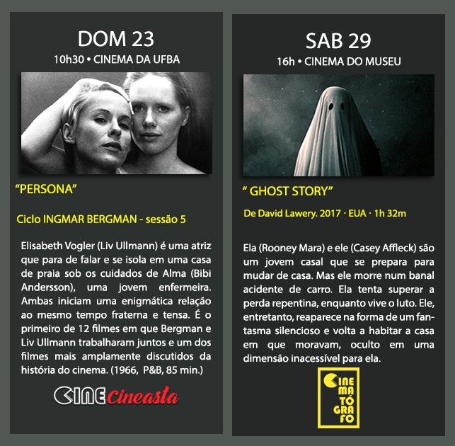 A Sessão Cinematógrafo, do último sábado do mês exibe “A Ghost Story”, um fascinante filme independente sobre, essencialmente, o amor e a transitoriedade da vida. Sessão única seguida de roda de conversa.
