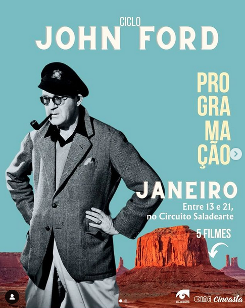 O Ciclo John Ford do Cine Cineasta começa sábado, dia 13. Vamos ver, em janeiro, cinco filmes do mestre “irlandês”. Confira a programação de janeiro nos cards.
