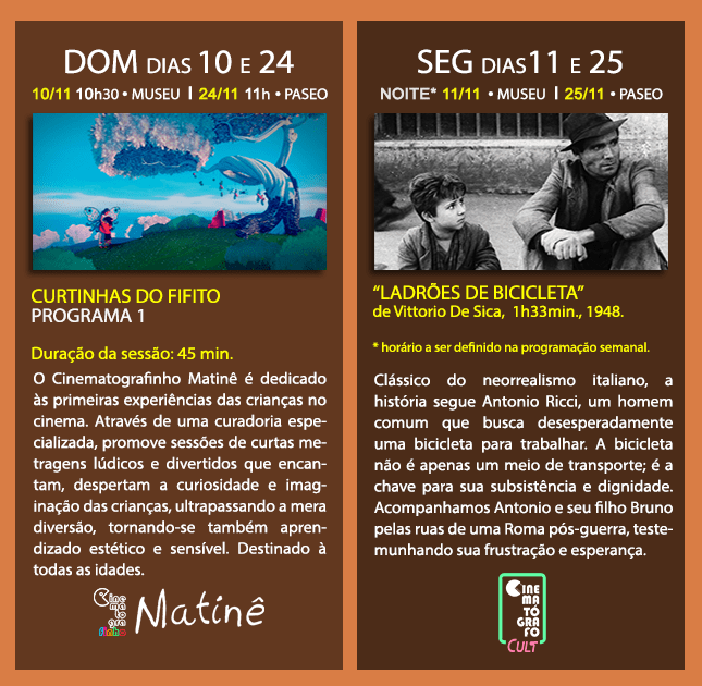📣 Ações Cinematógrafo: Programação dos encontros presenciais de NOVEMBRO!