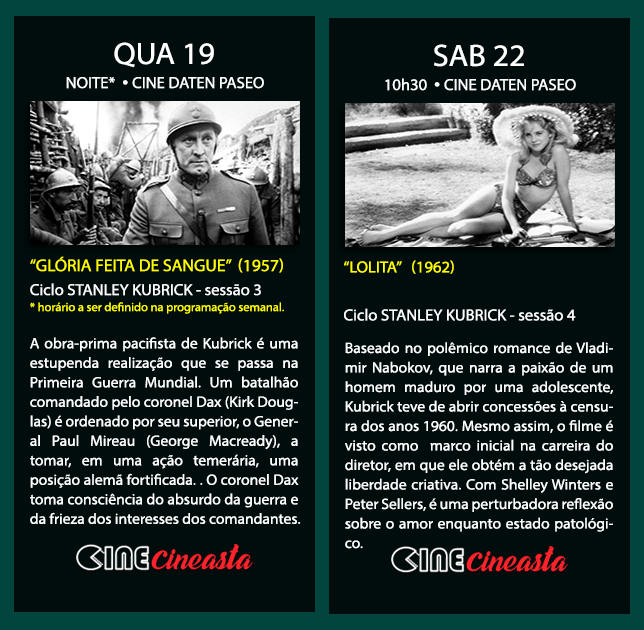 CINE CINEASTA: Vamos dar início ao ciclo Stanley Kubrick, começando com cinco filmes. O ciclo continua em abril. As sessões são seguidas de roda de conversa.