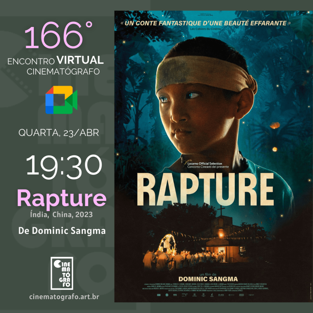 Nesta quarta, dia 23/abr, vamos ao nosso 166° Encontro Virtual Cinematógrafo! O assunto, desta vez, é o filme “Rapture” (2023), do diretor indiano Dominic Sangma.