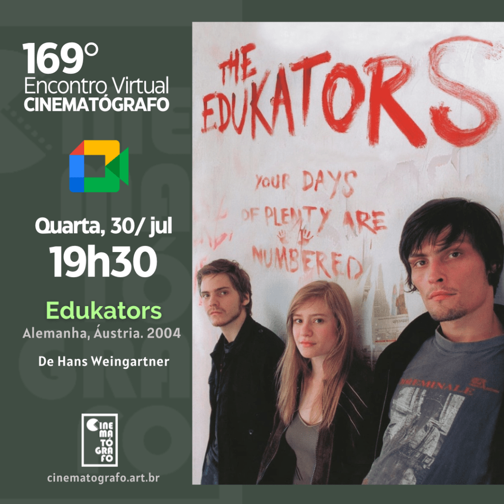 Nesta quarta, dia 30/julho, vamos ao nosso 169° Encontro Virtual Cinematógrafo! O assunto, desta vez, é o filme “Edukators” (2004), de Hans Weingartner.