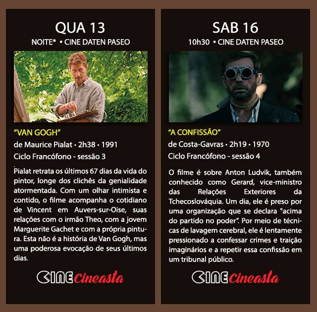 👉 Vamos retomar o ciclo francófono do CINE CINEASTA, com filmes de Bresson, Costa-Gavras, Pialat, Louis Malle e Djibril Diop Mambéty.
