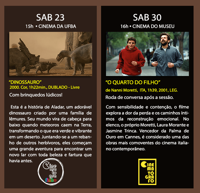 👉 🎈Valorizando a formação sensível e o protagonismo das crianças no cinema, o Finho – @cinematografinho – traz os curtinhas do Fifito das Matinês de domingo e o longa da sessão lúdica mensal da tarde de sábado, com 🦕 Dinossauros!