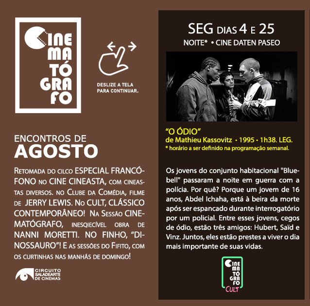 👉 Dia 1° do mês, dia de conferir a programação geral de agosto dos encontros Cinematógrafo e @cinematografinho