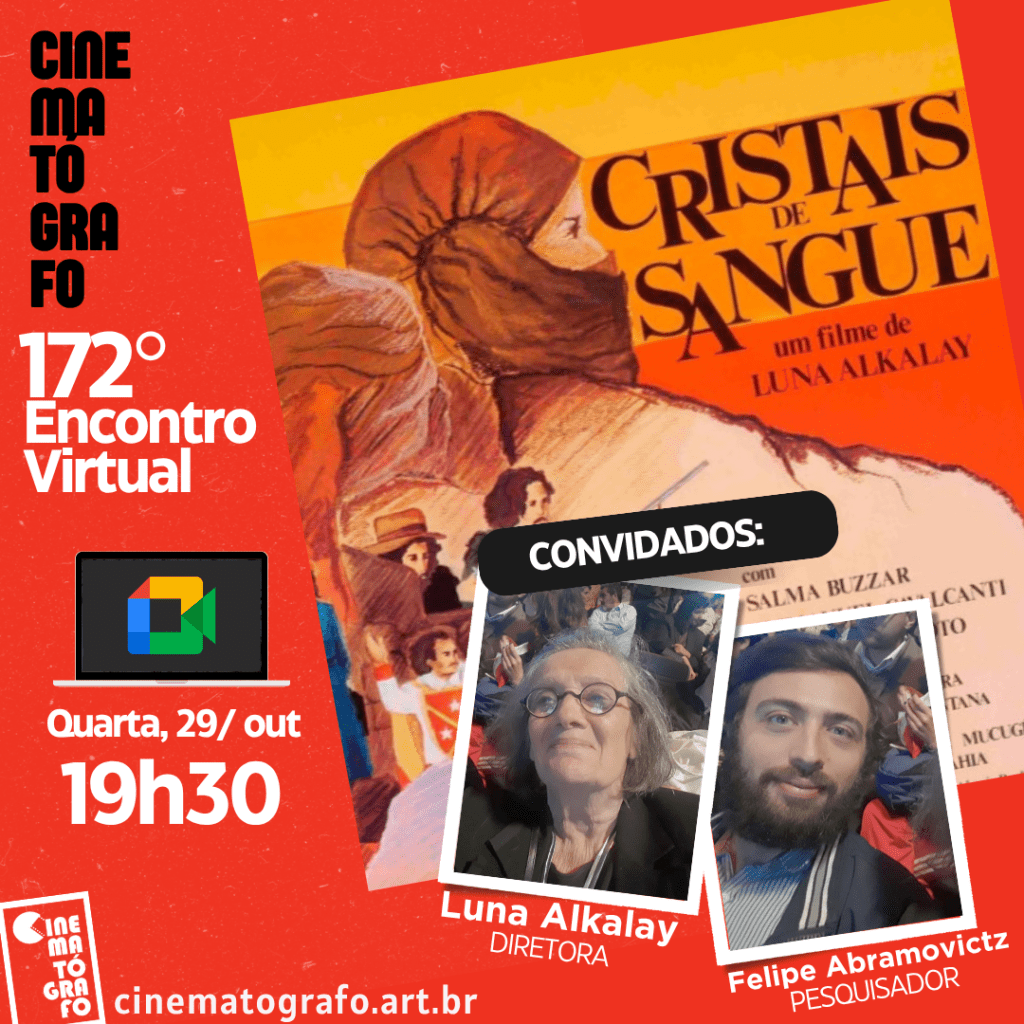 Nesta quarta, dia 29 de outubro, vamos ao nosso 172° Encontro Virtual Cinematógrafo! O assunto, desta vez, é o filme “Cristais de Sangue” (1975), e contaremos com presenças online da diretora Luna Alkalay e de Felipe Abramovictz, responsável pela restauração do filme.