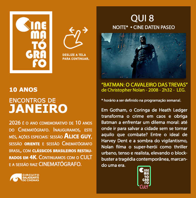 A seguir, conheça as novas sessões do Cinematógrafo em 2026, na programação de janeiro: