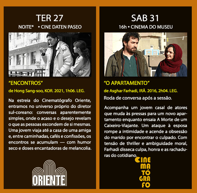 O Apartamento Roda de conversa após a sessão. Acompanha um jovem casal de atores que muda às pressas para um novo apartamento enquanto ensaia A Morte de um Caixeiro-Viajante. Um ataque à esposa rompe a intimidade e acende a obsessão do marido por encontrar o culpado. Com tensão de thriller e ambiguidade moral, Farhadi disseca culpa, honra e as rachaduras do cotidiano.