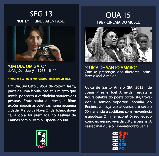 👉 Este mês, a gente inaugura o CINEMATÓGRAFO BAHIA, nossa sessão dedicada aos filmes baianos, sempre que possível com a presença dos diretores! O Cinematógrafo BAHIA alterna, mês a mês, com o Cinematógrafo BRASIL.