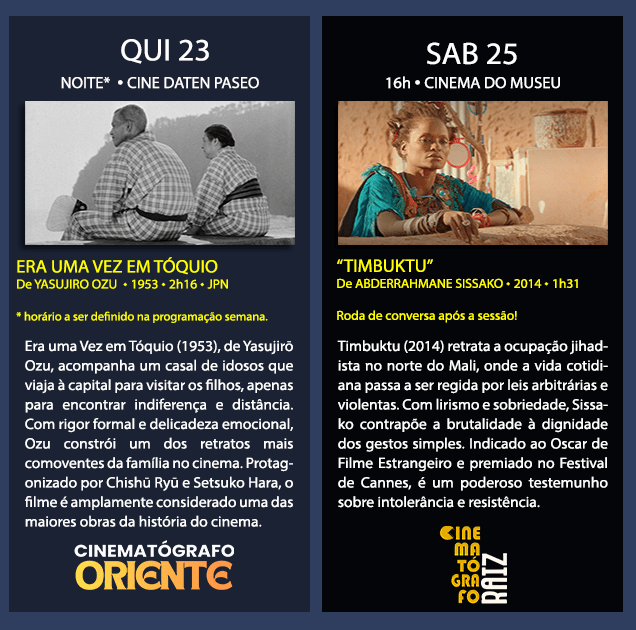 👉 Este mês, a gente inaugura o CINEMATÓGRAFO BAHIA, nossa sessão dedicada aos filmes baianos, sempre que possível com a presença dos diretores! Tem “Tmbuktu”, do diretor mauritano Abderrahmane Sissako, no Cinematógrafo RAIZ. E mais… Confira: