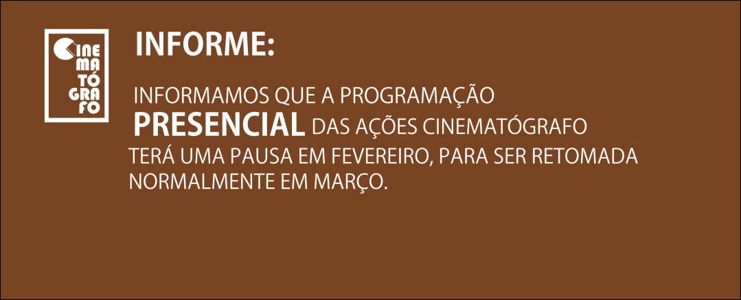 Informe: as ações presenciais do Cinematógrafo terão uma pausa em fevereiro, para serem retomadas em março. Saiba mais: